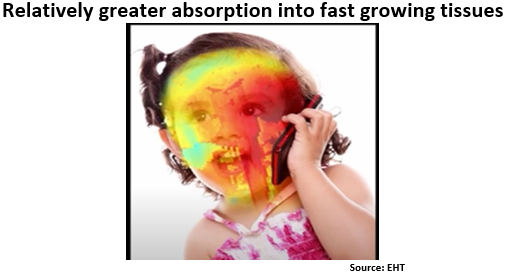 • Cell phones and wireless radiation can go deeper into their brains because children have a shorter distance from their skull to their brain center. Government regulations were based on a 220-pound man’s head, not a child’s head.
