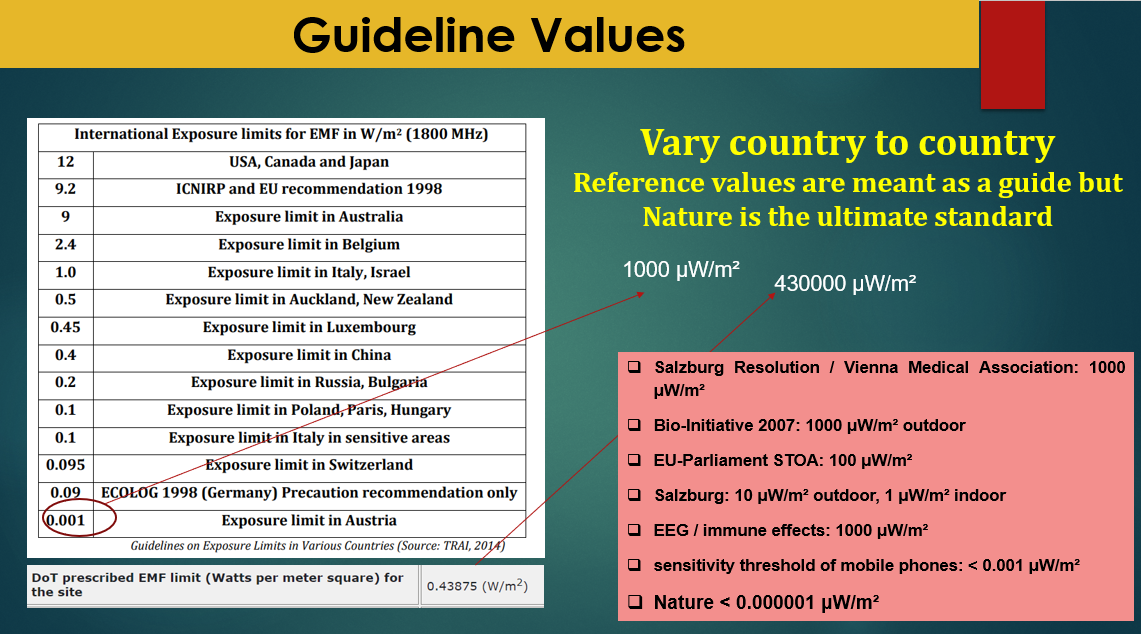 • Exposure limit for EMF varied country to country. Some countries have fixed very stringent limit than others.
